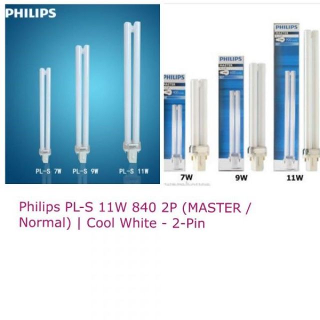 Lampu pl s 7w 9w 82 84 86 2p philips basis lamp 2 pin dimensi ukuran bulb.